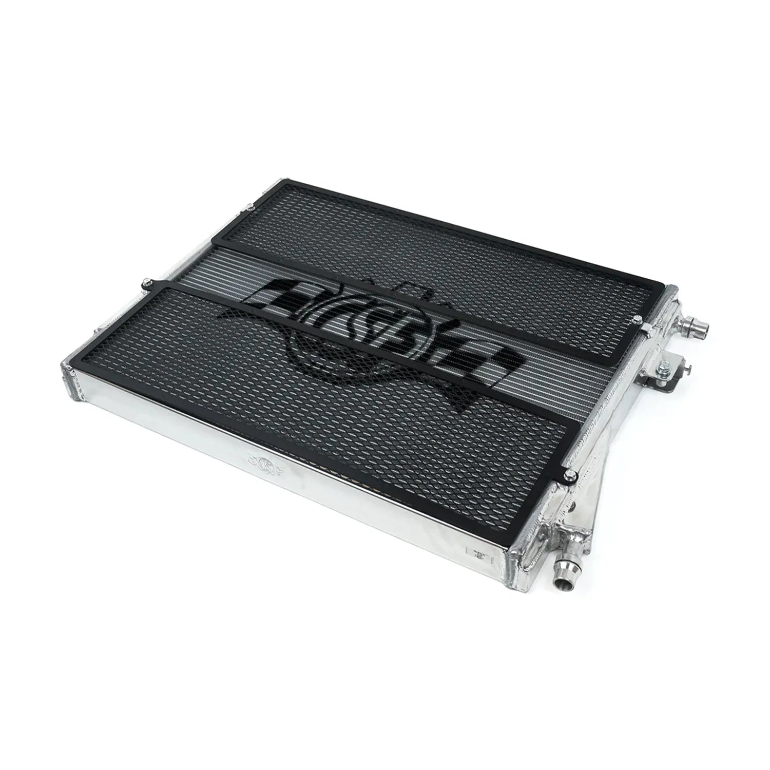 While in stock form, the G8X's factory cooling system does a decent job keeping up with the cooling demands. While this was true of the car in factory spec, those results changed when the cars were modified and started pushing more power. As with most performance vehicles, power adders were some of the first products to be released for the new G8X platform. Bolt-on upgrades, software tunes, and upgraded turbos are all great for speed, but start to create heat issues. Any time you add power to your car, you naturally increase the amount of heat the engine produces.The CSF Heat Exchanger features a 2-Row (vs OEM single row) Core that is 42mm thick with CSF's Exclusive B-Tube Technology. Increasing the size of the core and end tanks adds to the overall volume of the system which helps absorb more heat. The more efficient core not only helps dissipate more heat from the system, but also provides better airflow into the radiator that sits behind the heat exchanger. For vehicles equipped with the ZF8 Automatic Transmission, the heat exchanger core specifications were design concurrently with CSF's new Race-Spec Dual Core Transmission Oil Cooler (CSF #8221). The two included Black Rock Guards offer full protection for the heat exchanger (above and below the crash bar), especially when paired with aftermarket "open face" race style grilles. These grilles have become quite popular for performance and aesthetics, and keeping your heat exchanger safe from debris is very important. With well over 100 track hours worth of testing and thousands of miles on the road, you can be assured that the CSF's new High-Performance Front Mount Heat Exchanger has been thoroughly tested and vetted.Significantly reduce Intake Air Temperatures (IAT) for Maximum Performance (with Faster Heat Soak Recovery) on your BMW G8X M3/M4 with a CSF Heat Exchangers.